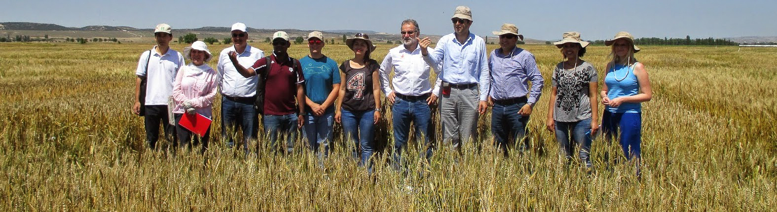 Hans Braun (seventh from left) visits wheat trials in Eskişehir, Turkey in 2014. (Photo: CIMMYT)