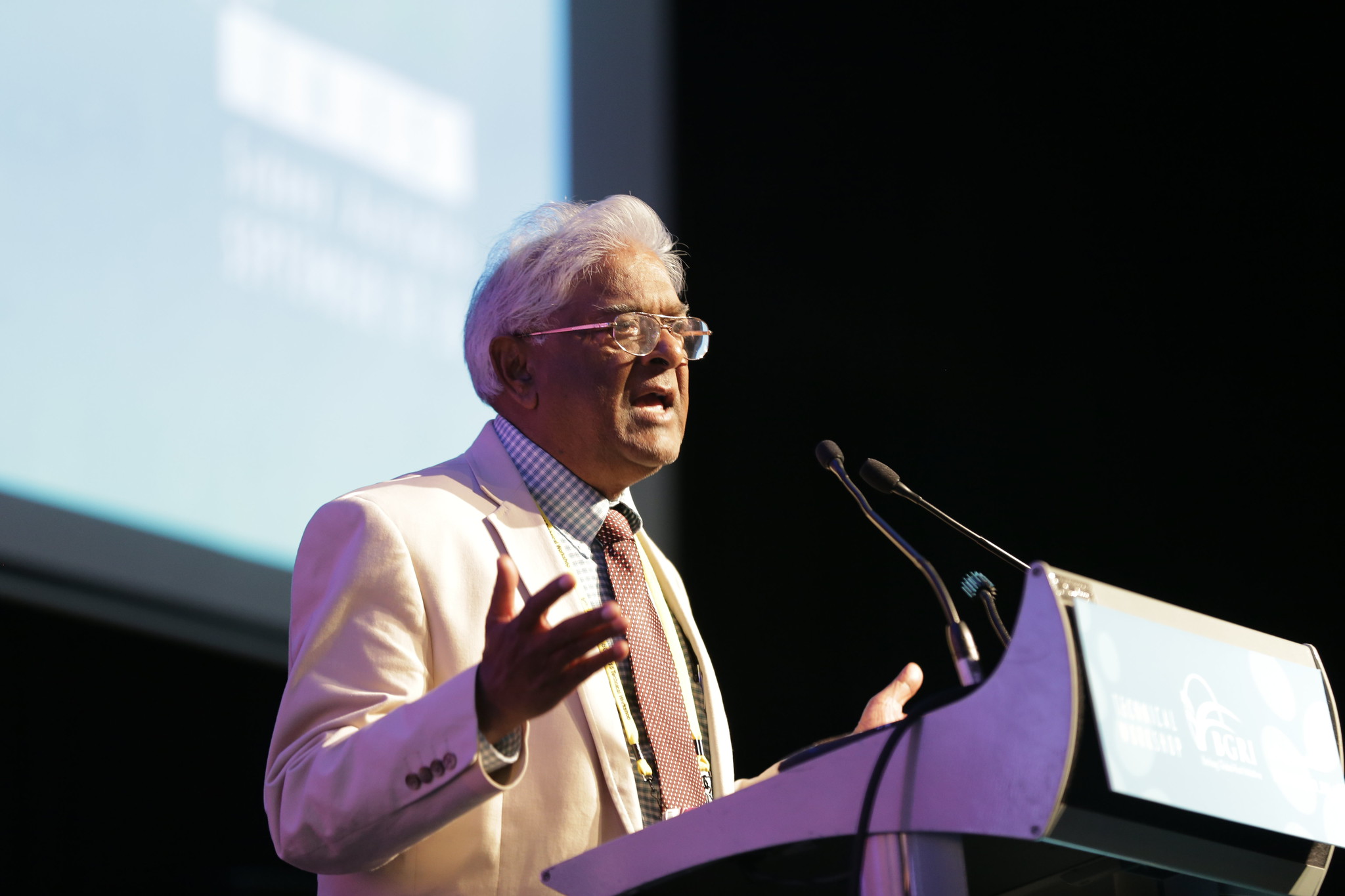 Sanjaya Rajaram speaks at the 2015 BGRI Workshop in Sydney, Australia. (Photo: Christopher Knight/CIMMYT)