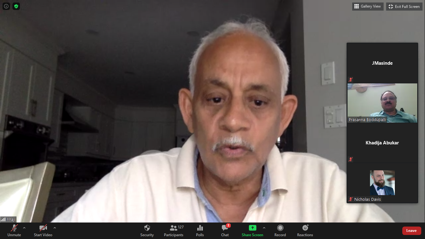 Hussein Haji, the Executive Director of Somali Agriculture Technical Group speaks at the fall armyworm online training on integrated pest management-based fall armyworm control. (Photo: Joshua Masinde/CIMMYT)
